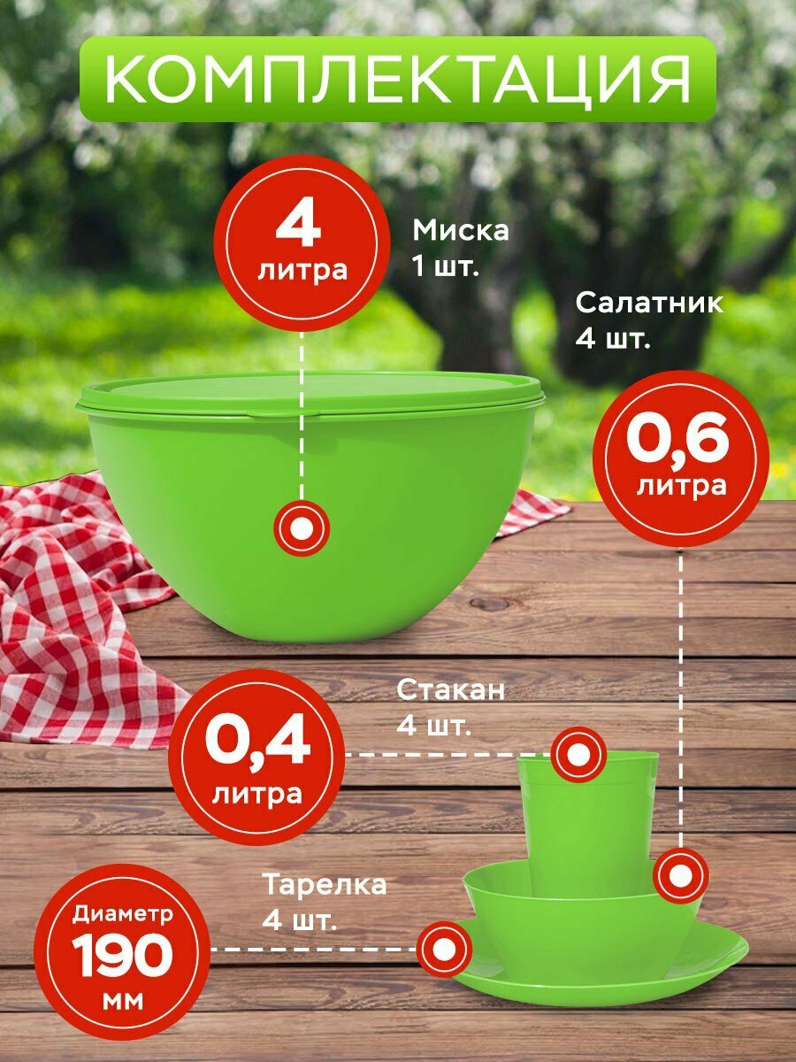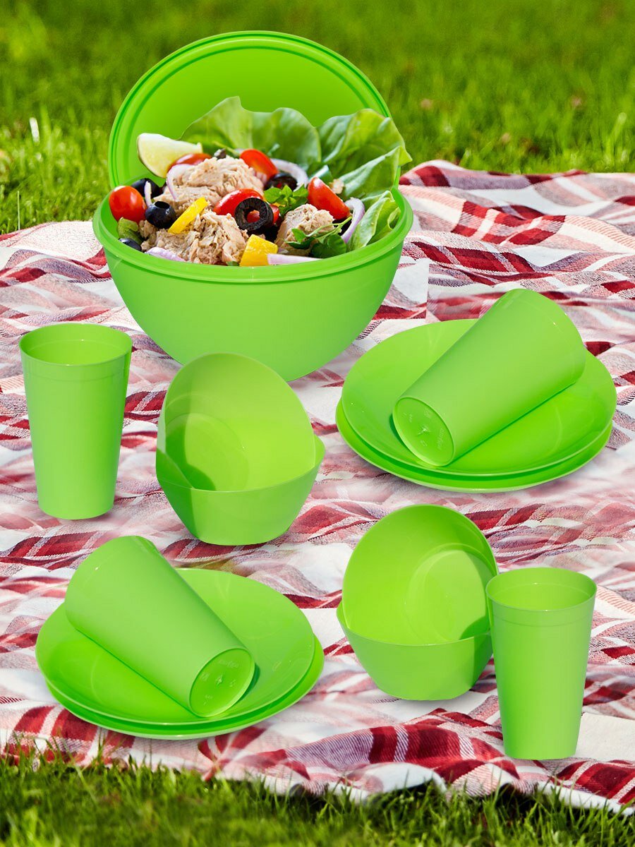 Миска салатники набор для пикника на 4 персоны Ангора цвет салатовый интересное:
