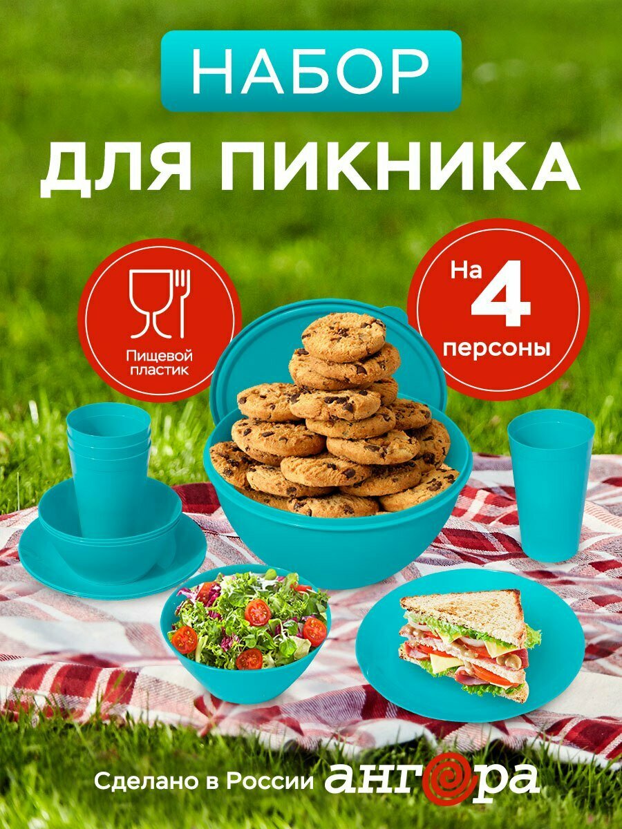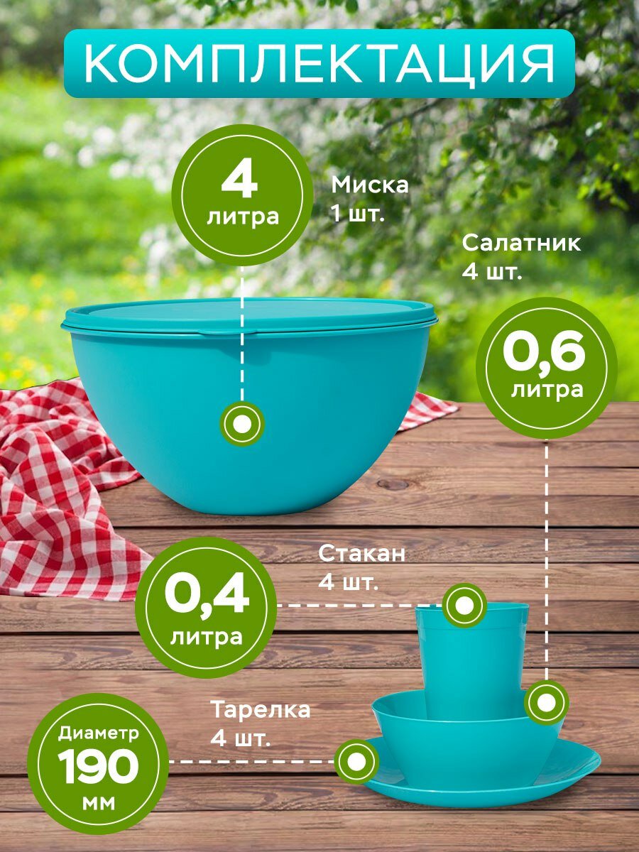Миска салатники набор для пикника на 4 персоны Ангора цвет тиффани интересное: