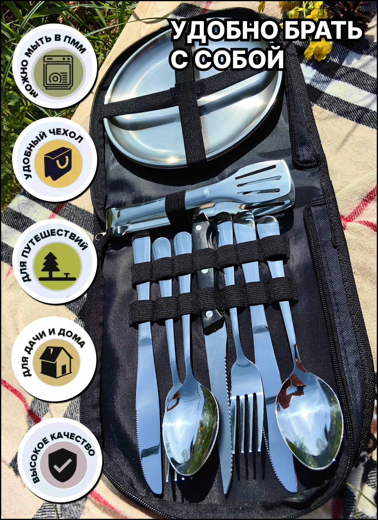 Набор посуды для пикника 10 предметов интересное: