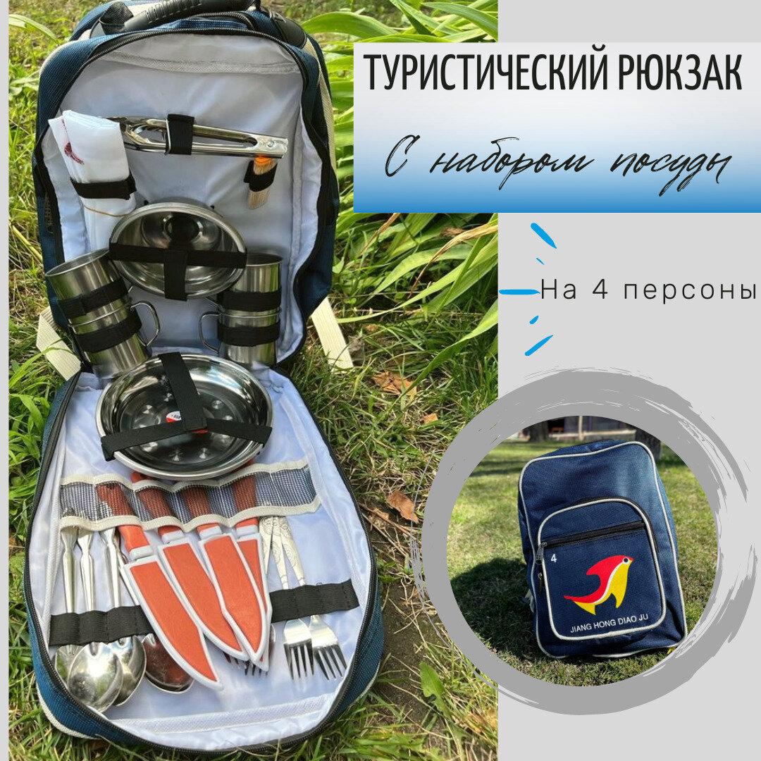 Рюкзак - холодильник с набором посуды для туризма рыбалки на 4 персон 2 в 1 интересное: