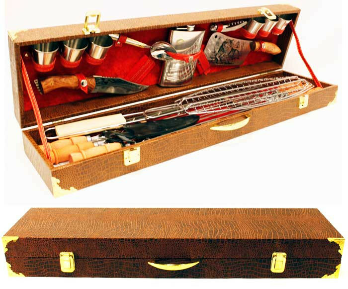 Купить Дагестан Набор для шашлыка "Профессионал" в коричневом кейсе (20 предметов)
