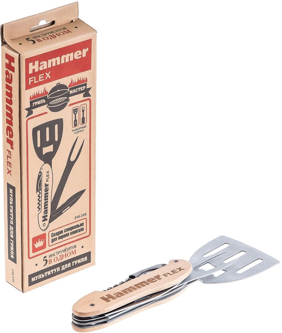 Набор для барбекю Hammer, 310-310, 5 предметов, 0.58 кг, вилка, лопатка, нож, штопор с упором, открывашка для крышек