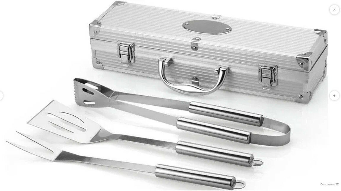Набор для барбекю 3 предмета BBQ / Инструменты для гриля, мангала 3 шт. из нержавеющей стали/ Подарочный набор для шашлыка в кейсе интересное: