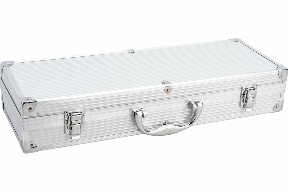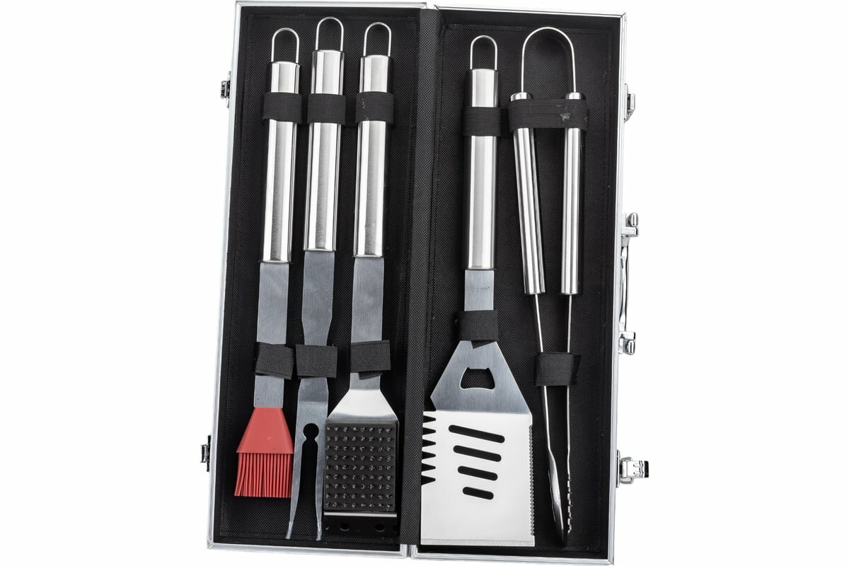 | Комплектация | Лопатка для гриля (40 см); Щипцы для гриля (40,5 см); Вилка для гриля (41 см); Щетка для гриля (40,5 см); Кисть с силиконовым ворсом (39 см); Алюминиевый чемодан - 1 шт. |