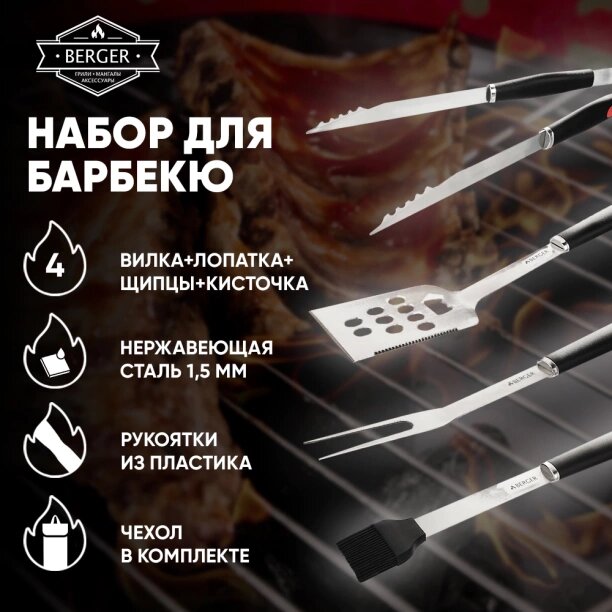 Ниже Вы можете прочитать отзывы на Набор для барбекю BERGER 4 предмета, ознакомится с подробными характеристиками, посмотреть интересные обзоры и фотографии на Набор для барбекю BERGER 4 предмета.