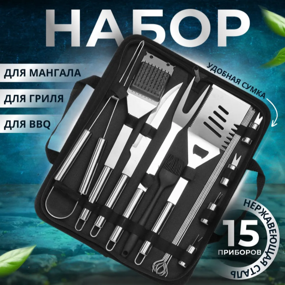 Набор для барбекю в складной сумке, 15 предметов интересное: