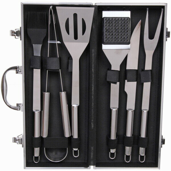 Набор для барбекю из 6 предметов в кейсе LX-0036: щипцы, вилка, лопатка, нож, кисточка кулинарная, щетка-скребок интересное: