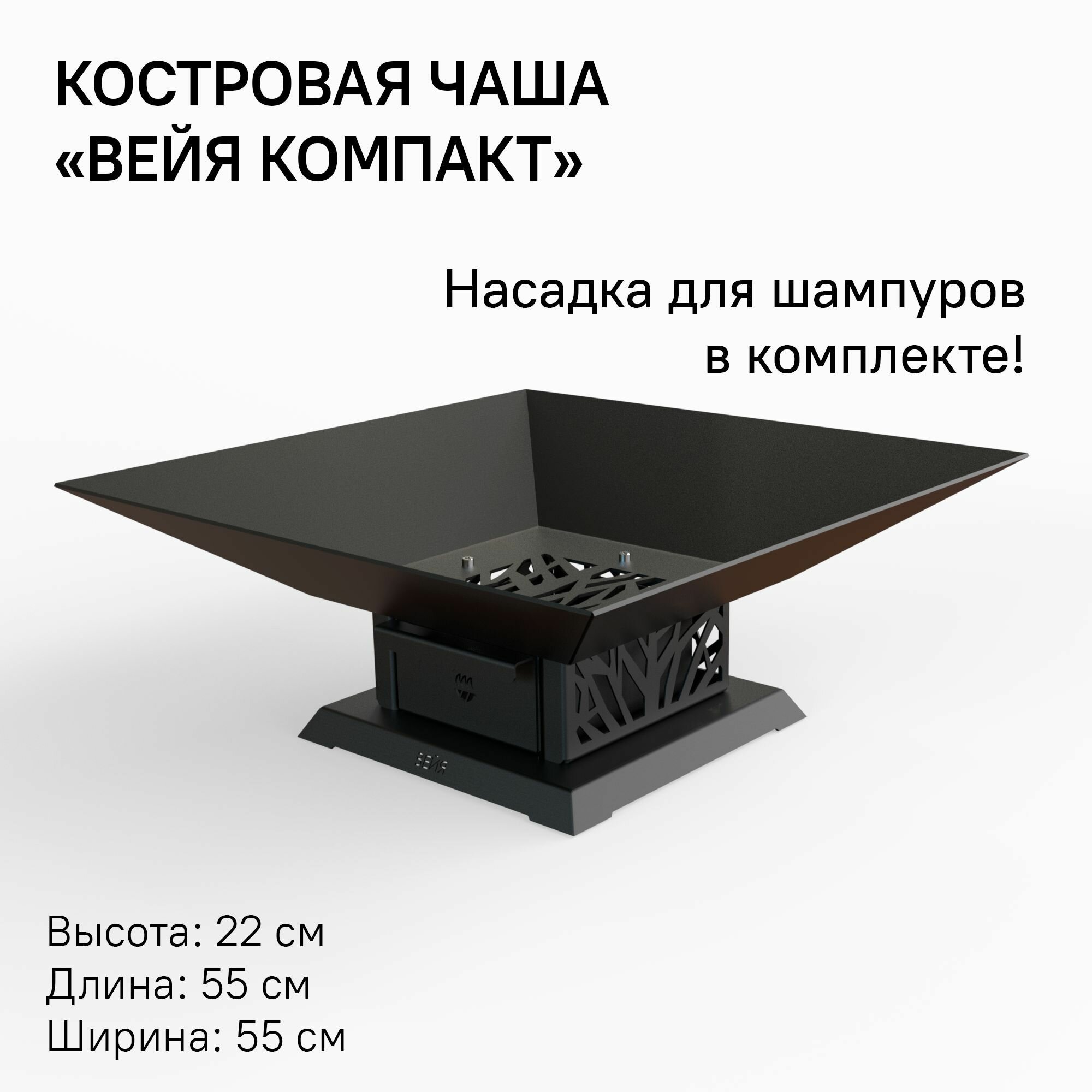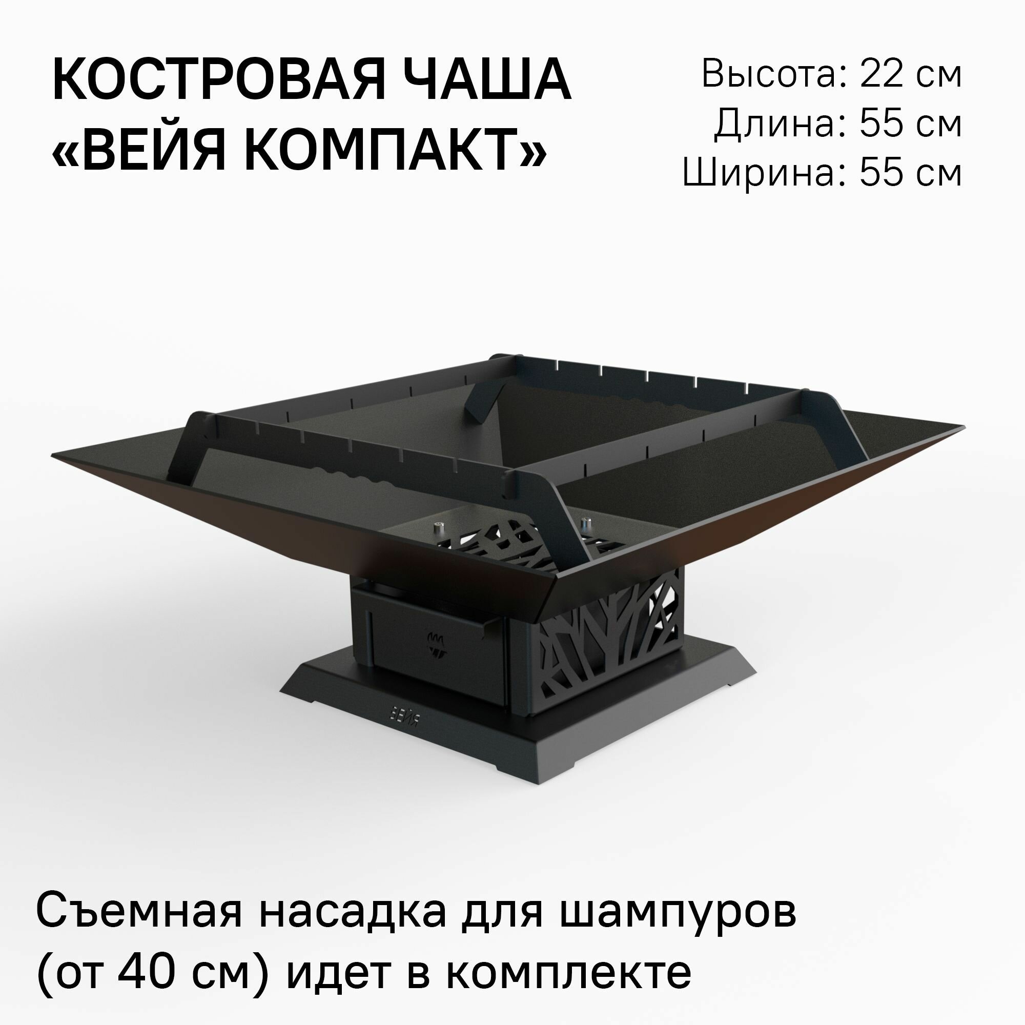 Костровая чаша-очаг со съемной гриль-вставкой и зольником Биохит Вейя Компакт 55х55х22 см