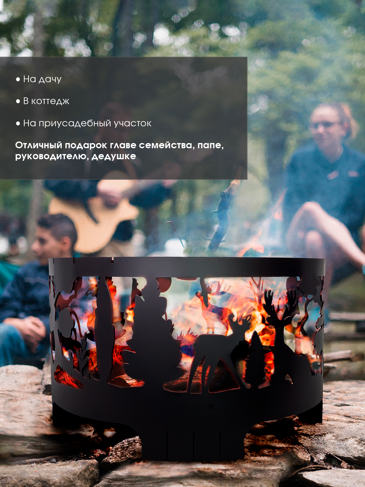 Костровая чаша очаг-сфера с рисунком Лесная сказка из стали 4мм