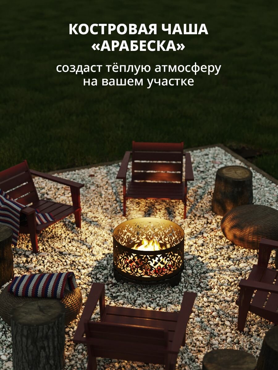 СохранитьЧаша для костра "Арабеска" - толстый металл 4мм, диаметр 60 см, черная, для кемпинга. Костровая чаша интересное: