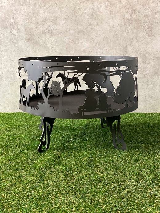 Костровая чаша очаг-сфера с рисунком Лесная сказка из стали 4мм