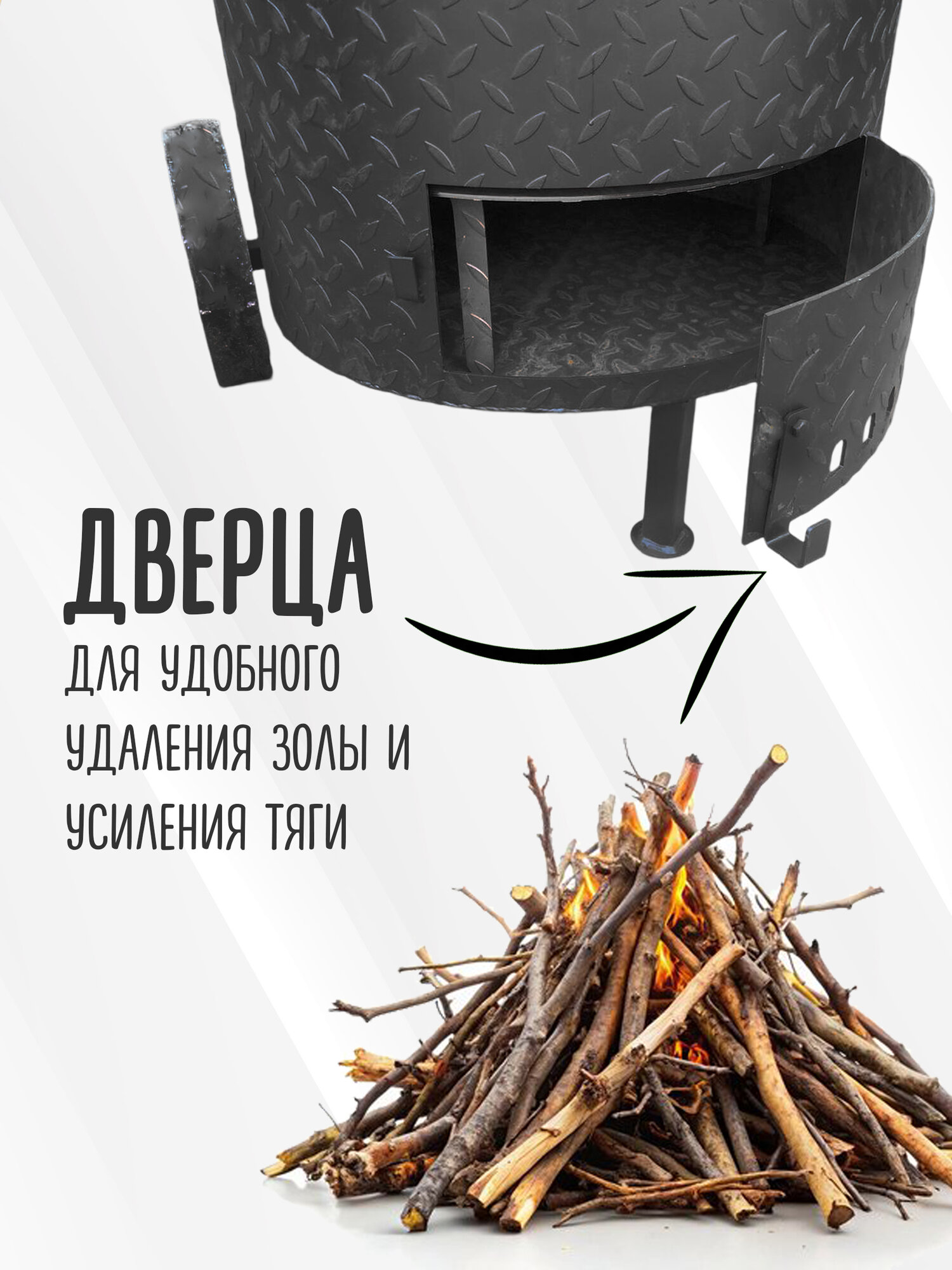 Печь для сжигания мусора с двойными дверцами 200 литров усиленная с колосником и дымоходом, сталь 3 мм.