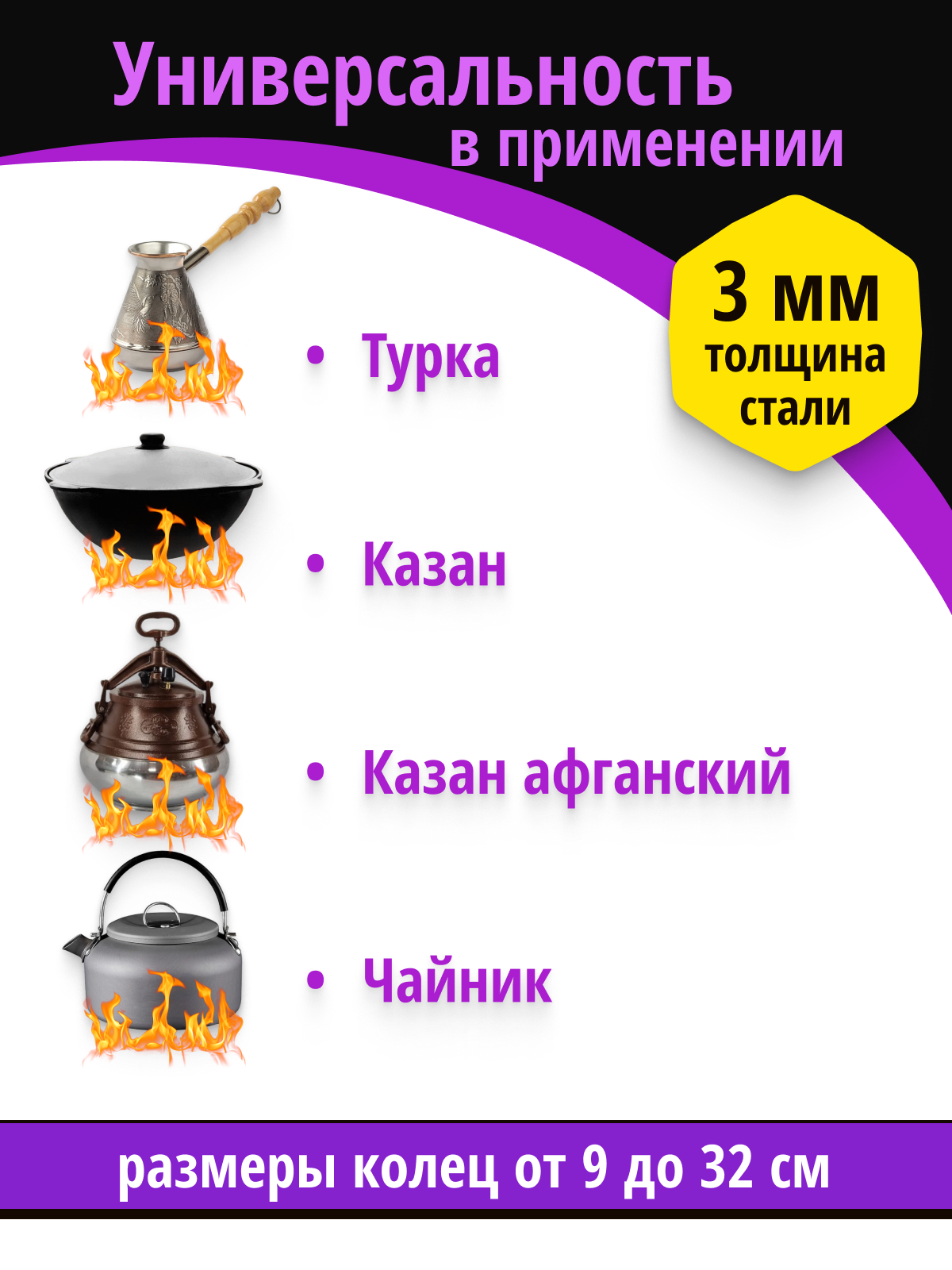 Кольца для печи под казан, на разборную печь мангал, металл 3 мм. Колец 4 шт. Горячая сталь