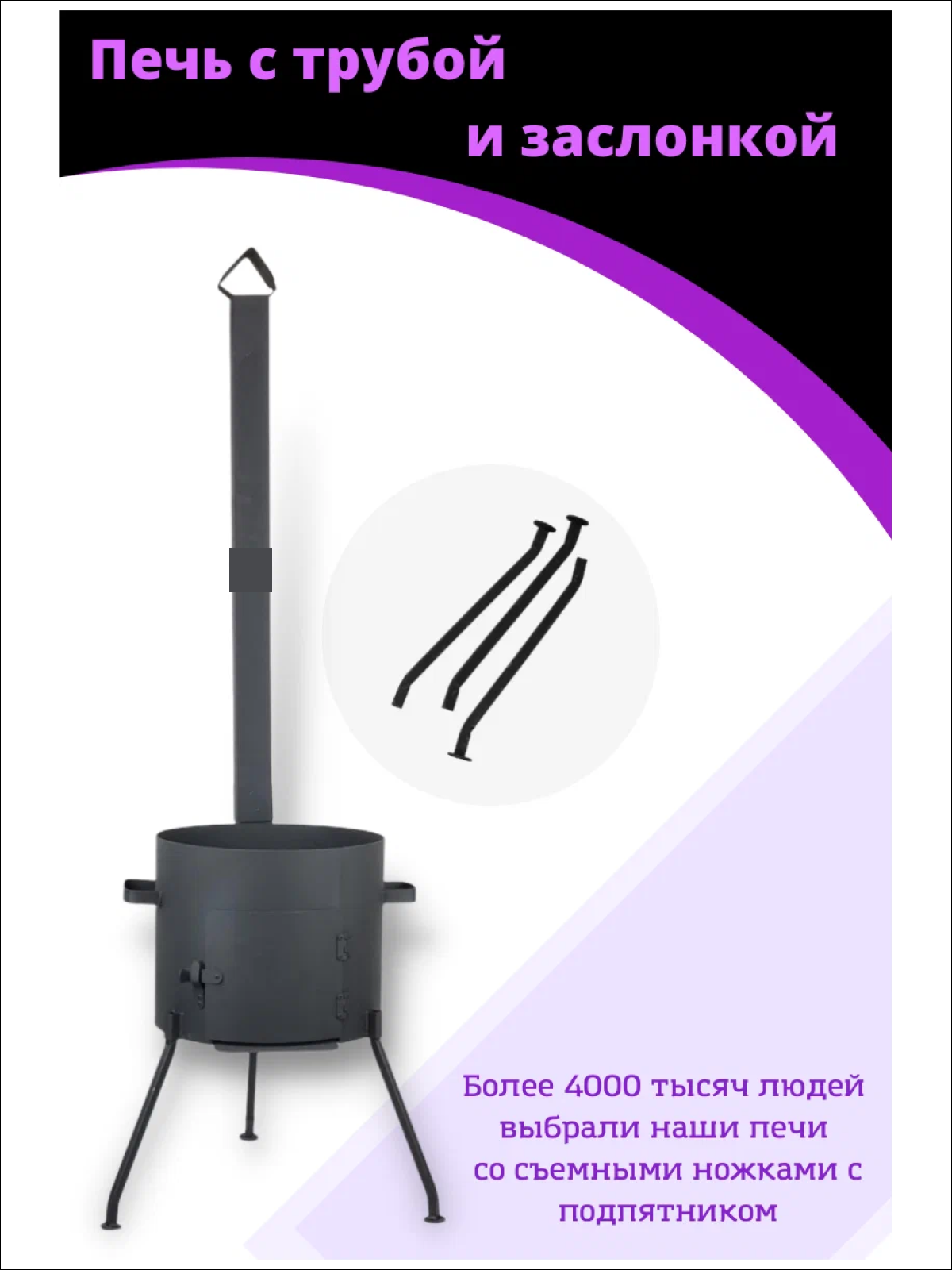 Печь для казана объемом 10 литров с ручками, съемные ножки, зольник