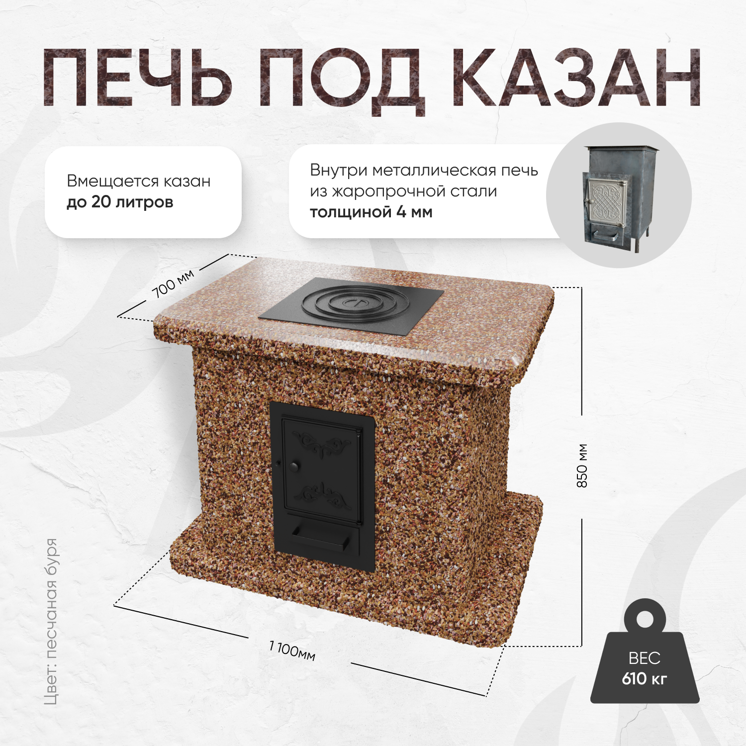 Ниже Вы можете прочитать отзывы на Печь под казан, фактура Песчаная буря, ознакомится с подробными характеристиками, посмотреть интересные обзоры и фотографии на Печь под казан, фактура Песчаная буря.