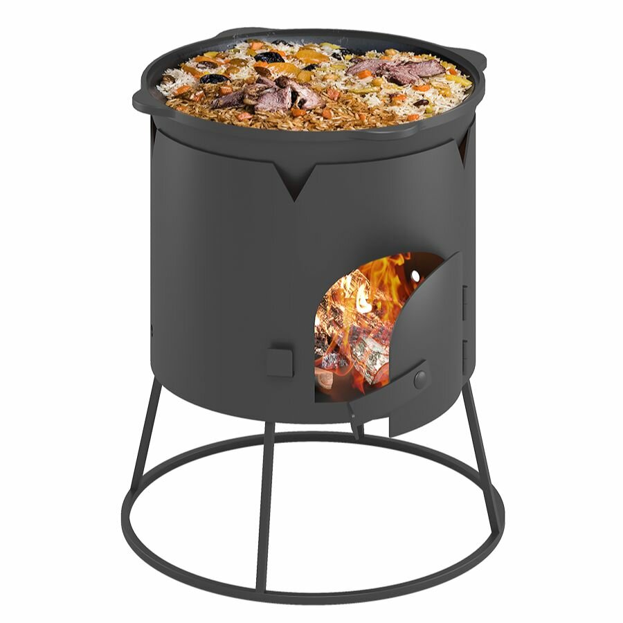 Печь для казана объемом 10 литров с ручками, съемные ножки, зольник