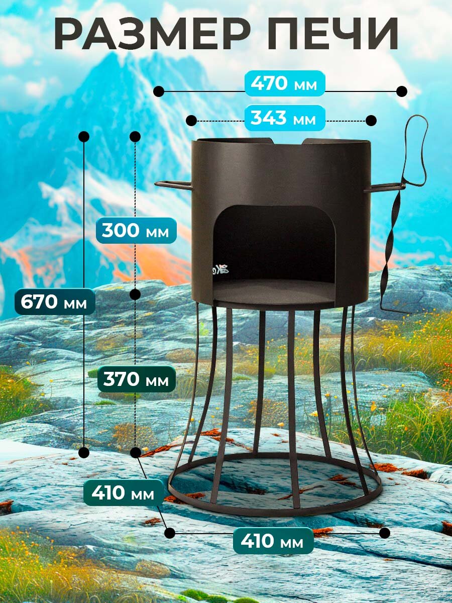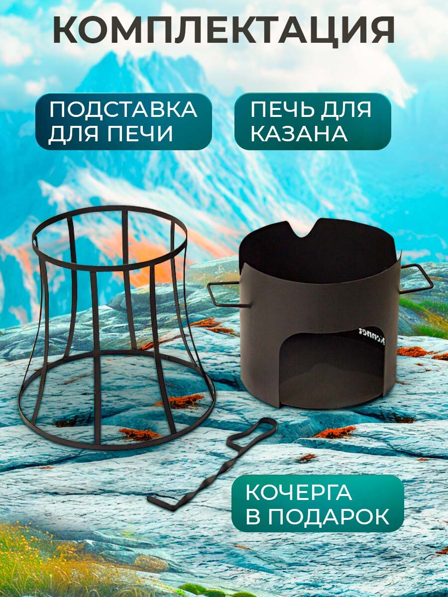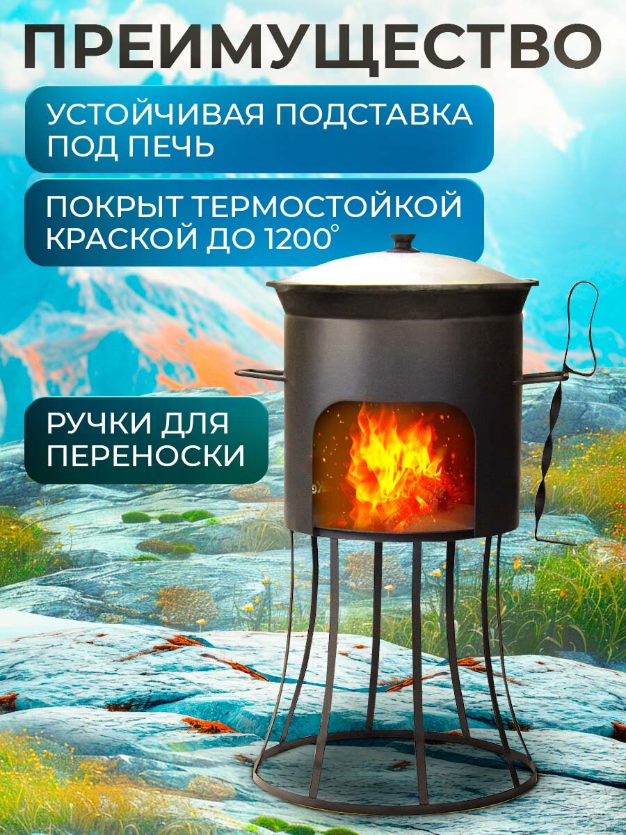 Печь для казана объемом 10 литров с ручками, съемные ножки, зольник