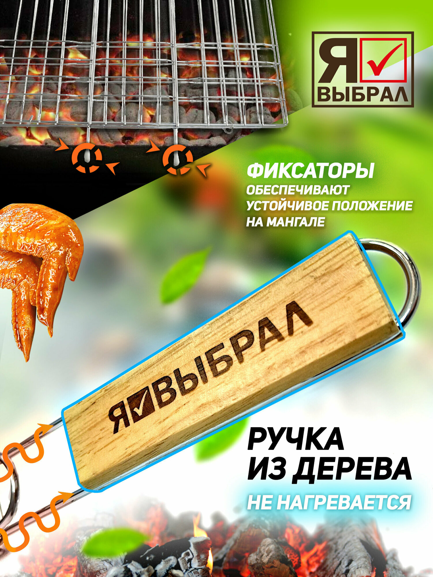 Набор для пикника и дачи. Решетка для гриля на мангал 2 шт для барбекю из хромированной стали для шашлыков, овощей, рыбы, птицы.