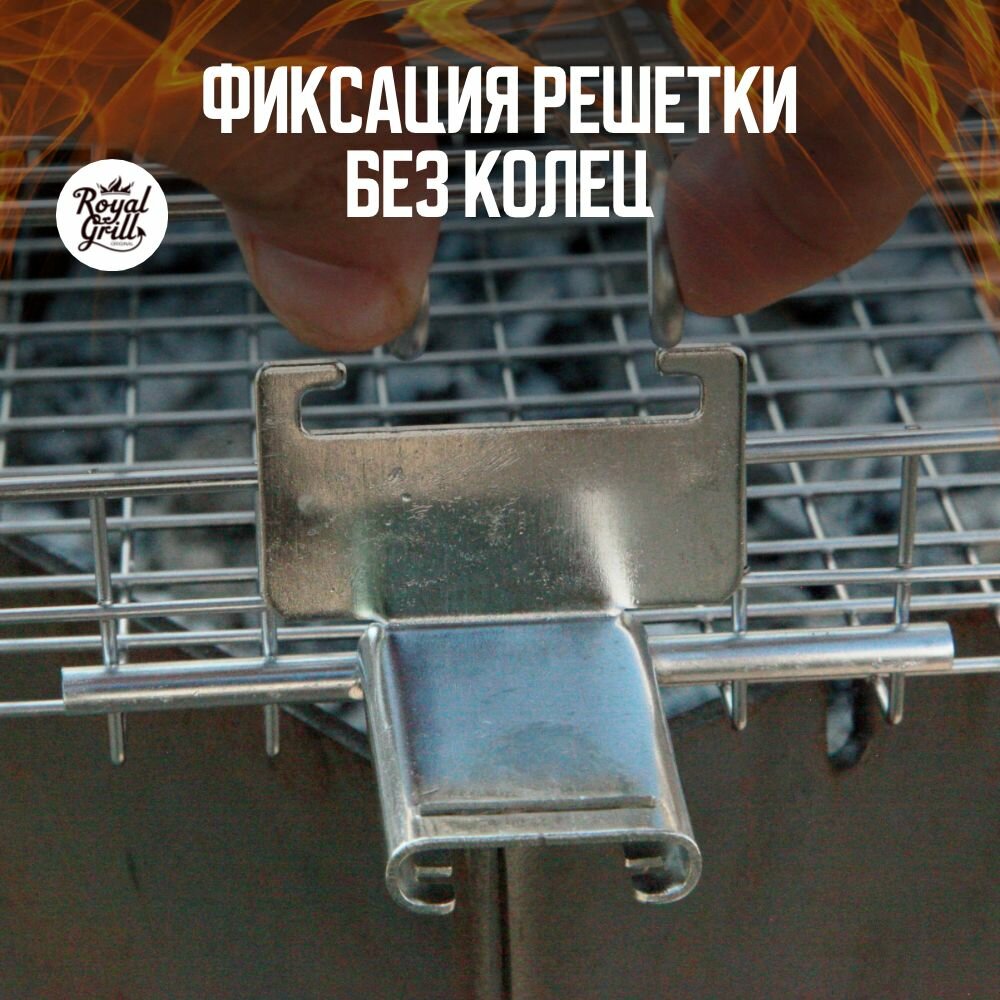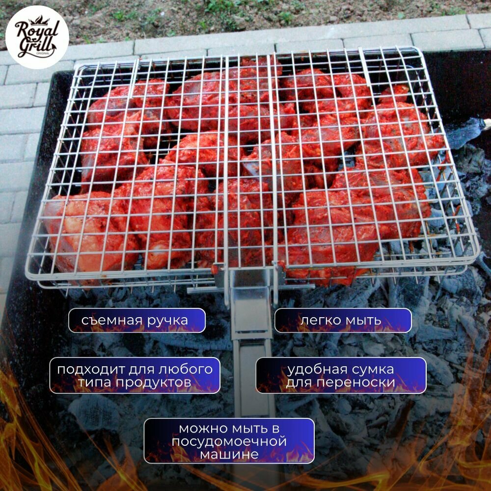 Решетка для гриля на мангал ROYAL BBQ 42х22 см для барбекю, большая из нержавейки с толстым прутком, для мяса и овощей