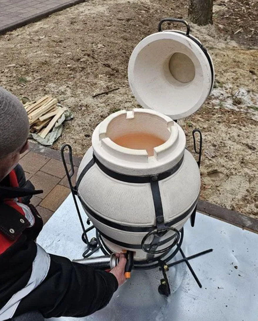 Аполлон с откидной крышкой - Комплект "Dacha" - тандыр для дачи средний - 50 л, Технокерамика.