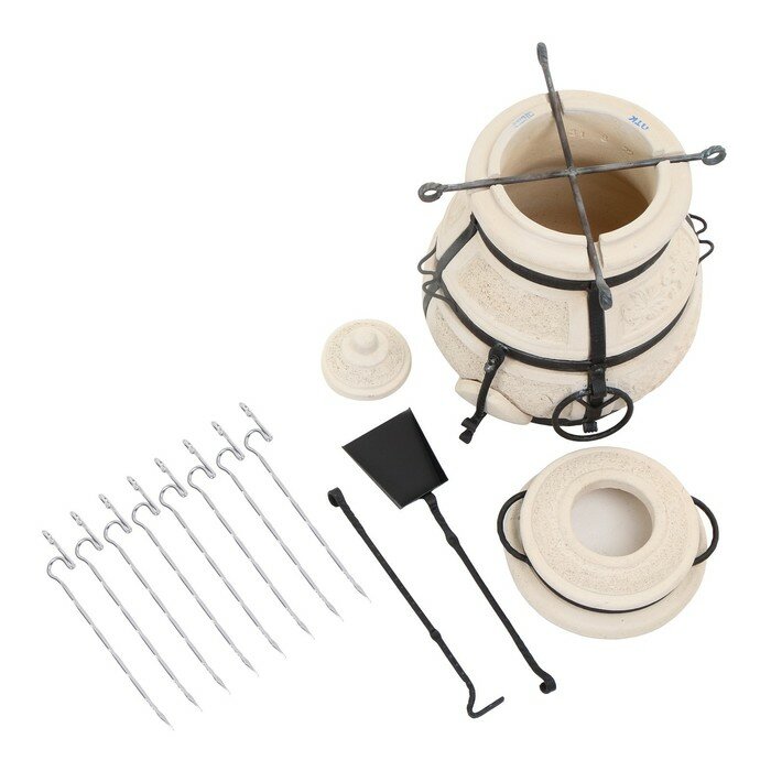 Купить Тандыр "Сармат Кочевник" h-63 см, d-45, 51,8 кг, 8 шампуров, кочерга, совок