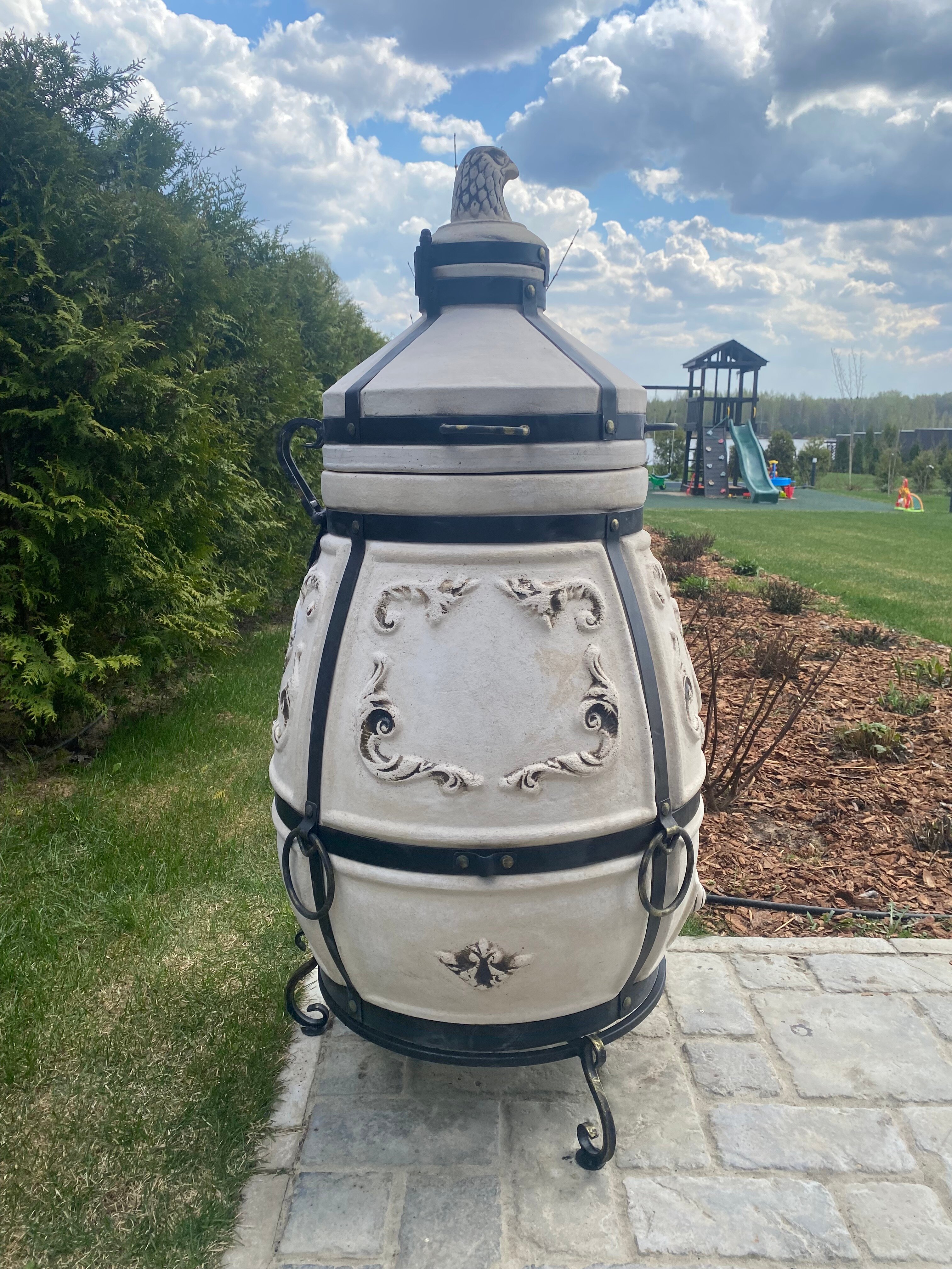 Аполлон с откидной крышкой - Комплект "Dacha" - тандыр для дачи средний - 50 л, Технокерамика.