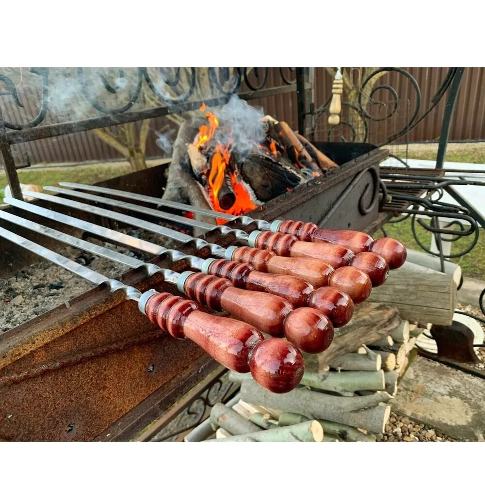 Набор шампуров с деревянной ручкой из 8 штук 50 см. Шампуры с деревянной ручкой. Шампуры из нержавеющей стали