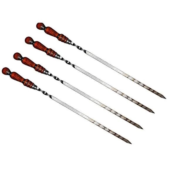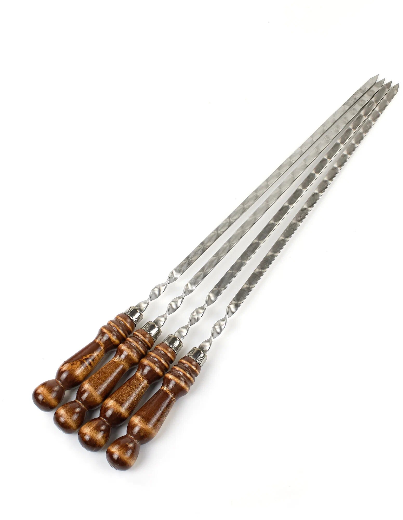 Купить Набор шампуров с деревянной ручкой из 4 штук 45 см. Шампуры с деревянной ручкой. Шампуры из нержавеющей стали