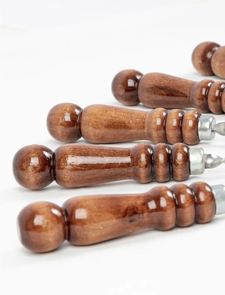 Набор шампуров с деревянной ручкой 62 см с ножом для снятия шашлыка