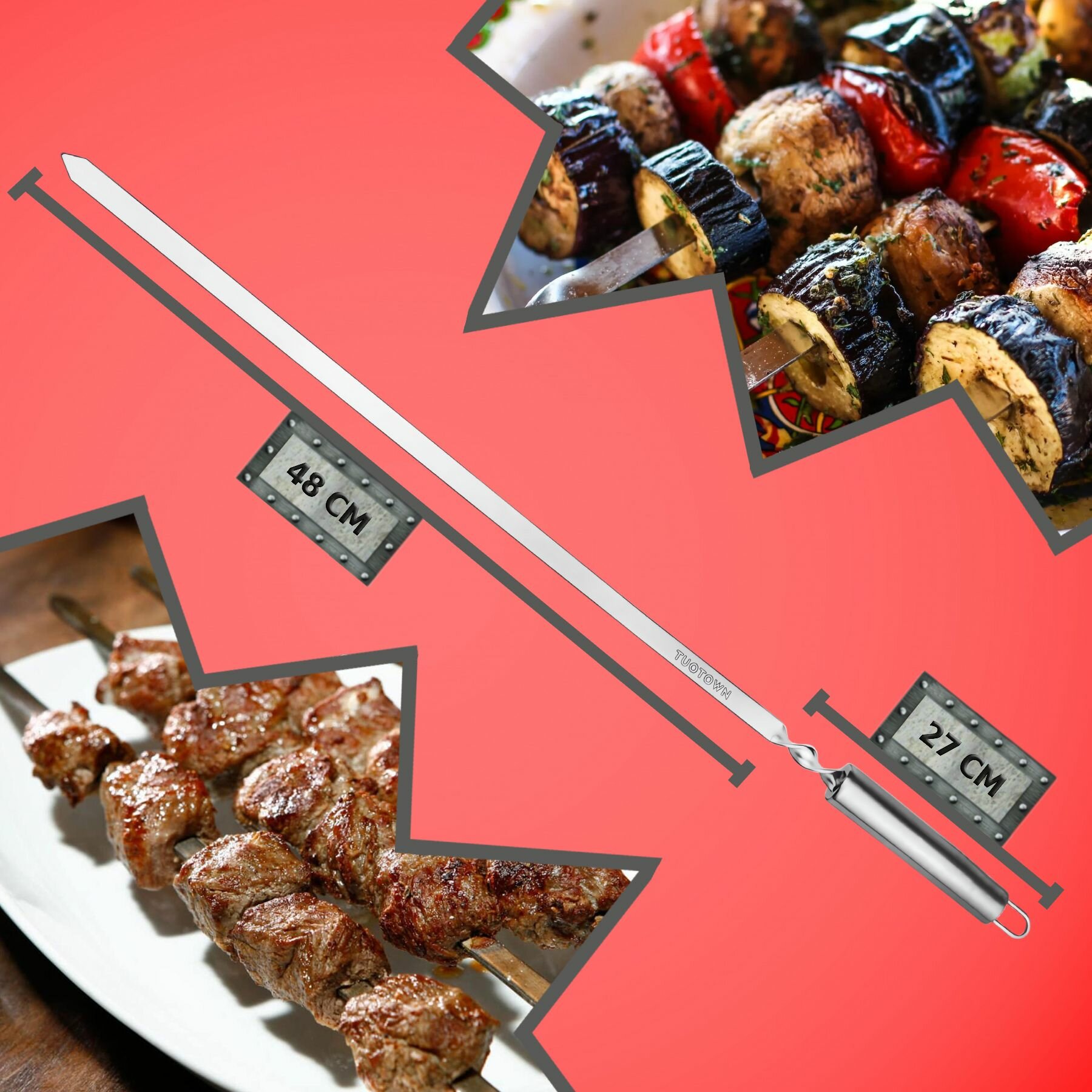 Набор шампуров с деревянной ручкой 62 см с ножом для снятия шашлыка