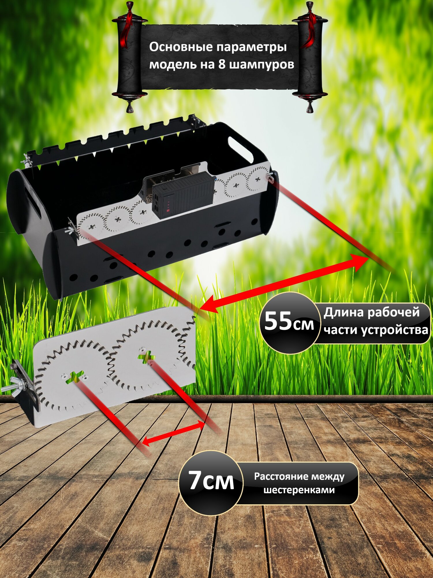 Emangal на 8 шампуров. Шампуры-самокруты, Устройство вращения шампуров с аккумулятором и светом Emangal на 8 шампуров. Электровертел Emangal. интересное: