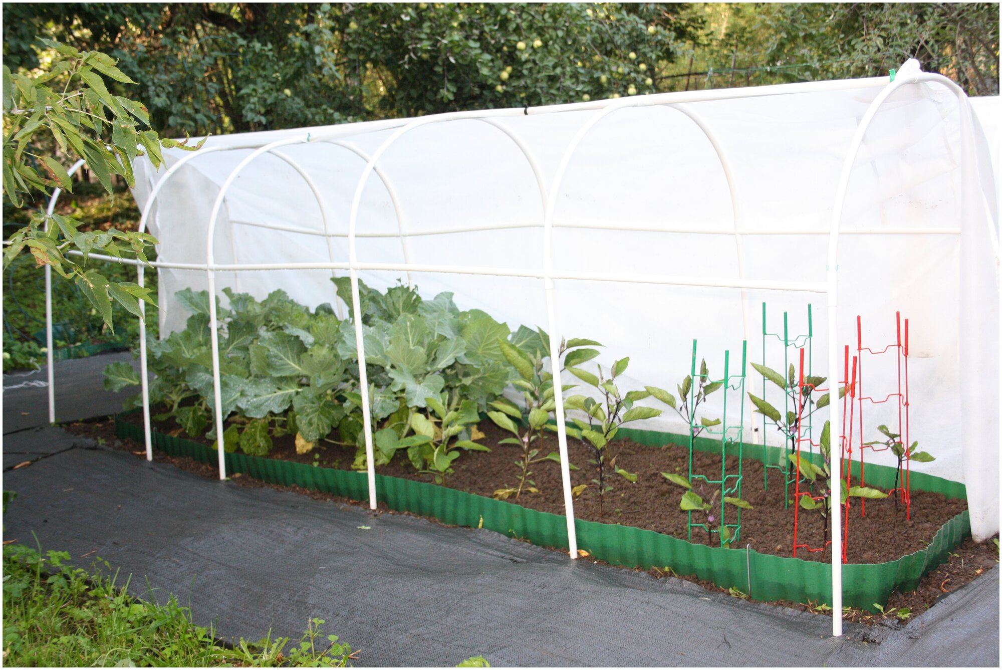 | Комплектация | Чехол с молнией — 1 шт Колышки для дуг ПНД — 15 шт Трубка-удлинитель (80см) — 14 шт Трубка полу-дуга — 14 шт Горизонтальная перемычка (80см) — 18 шт Клипсы — 4 шт Крестовины — 15 шт Тройники — 6 шт Торцевые колышки — 2 шт П-образные колышки — 4 шт Шпагат (нить, веревка) — 6 м |