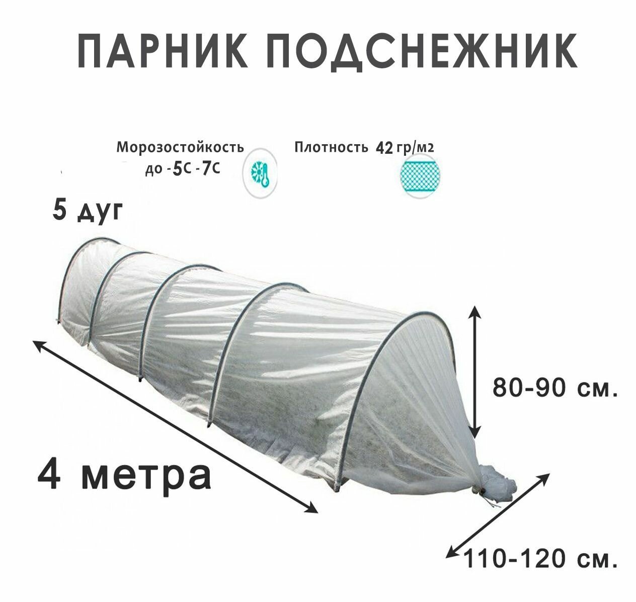 | Дополнительная информация | в комплекте: дуги ПНД 5 шт, колышки (длина 25 см) 11 шт, клипсы (диаметр 20 мм) 11 шт, укрывной материал «СУФ-42» 1 шт |