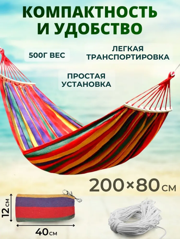 Гамак подвесной с перекладиной из дерева,хлопок 200х80 интересное: