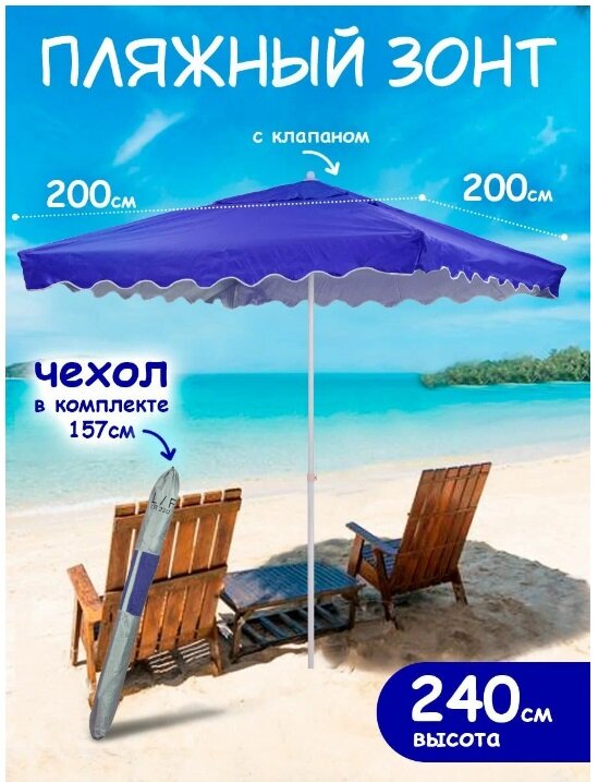 Пляжный зонт, 2х2 м, плащевка, с клапаном, квадратный (синий), в чехле LR22D интересное: