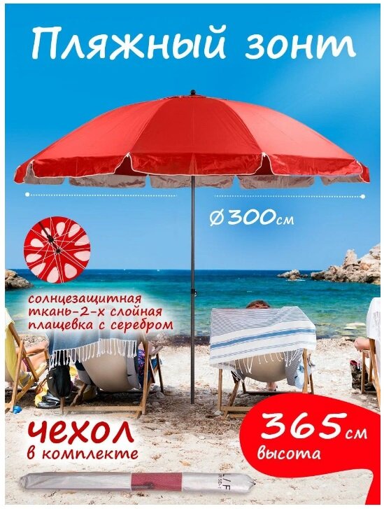 Пляжный зонт, 3 м, плащевка (красный), в чехле LR5D-1 интересное: