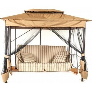 Качели садовые 4-х местные Ольса Шатер ткань панама каркас коричневый, ткань полоска бежево-коричневная
