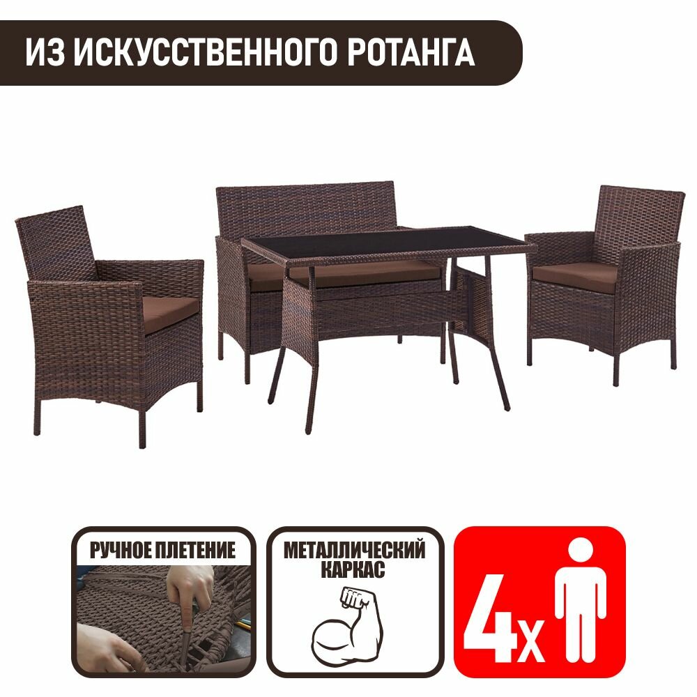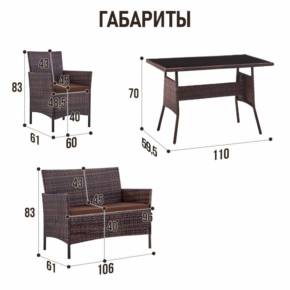 Набор террасной мебели Глория-2 с1195/125 / Обеденный стол / диван / 2 кресла
