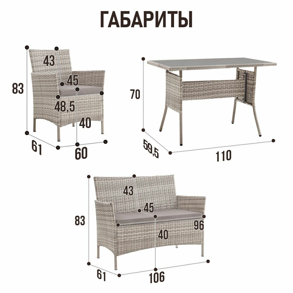 Комплект садовой мебели для дачи и дома из ротанга Киото плюс, серый интересное: