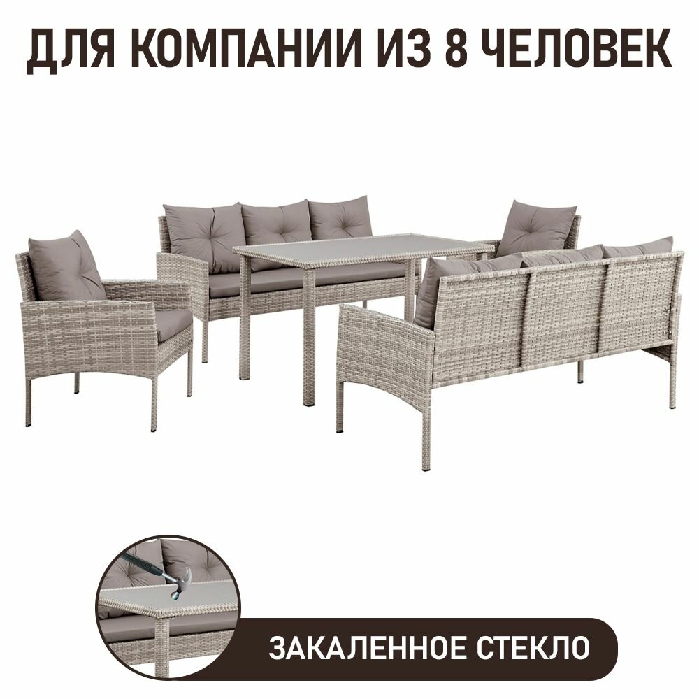 Комплект садовой мебели из искусственного ротанга Фьорд-8, серый
