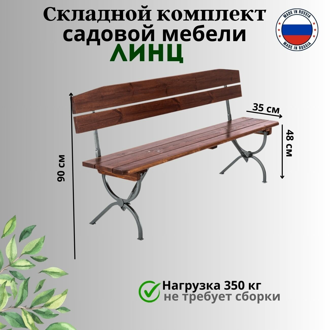 | Габариты | стол 180х60х78 см, скамья 180х35х90 см |