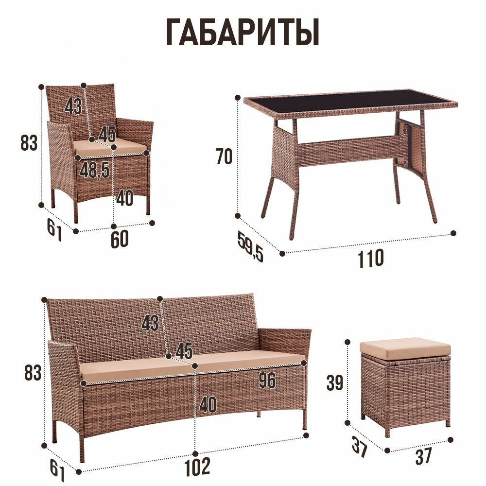 Набор террасной мебели Глория-2 с1195/125 / Обеденный стол / диван / 2 кресла