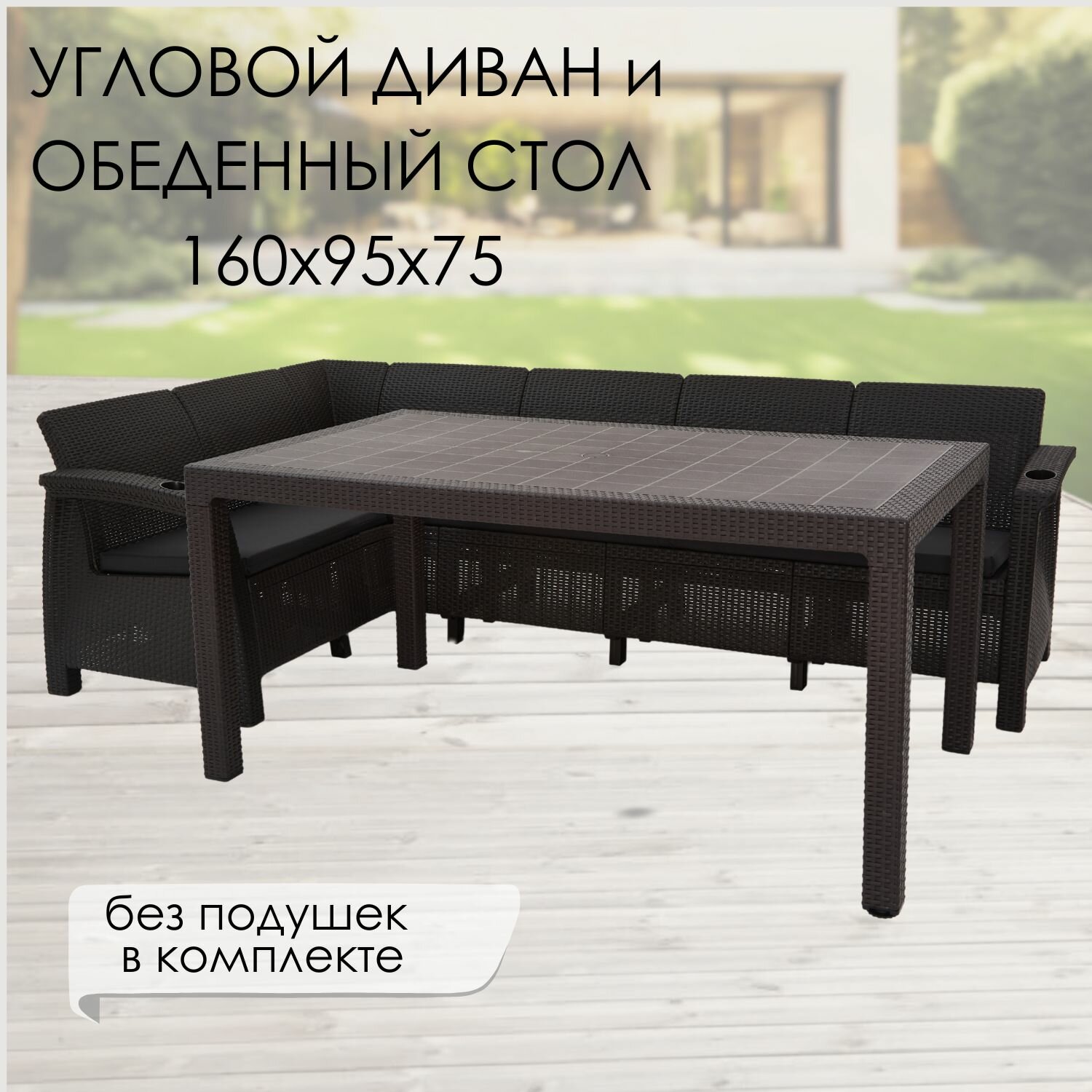 Купить Комплект садовой мебели: Диван угловой и стол обеденный 160х95, мокко без подушек