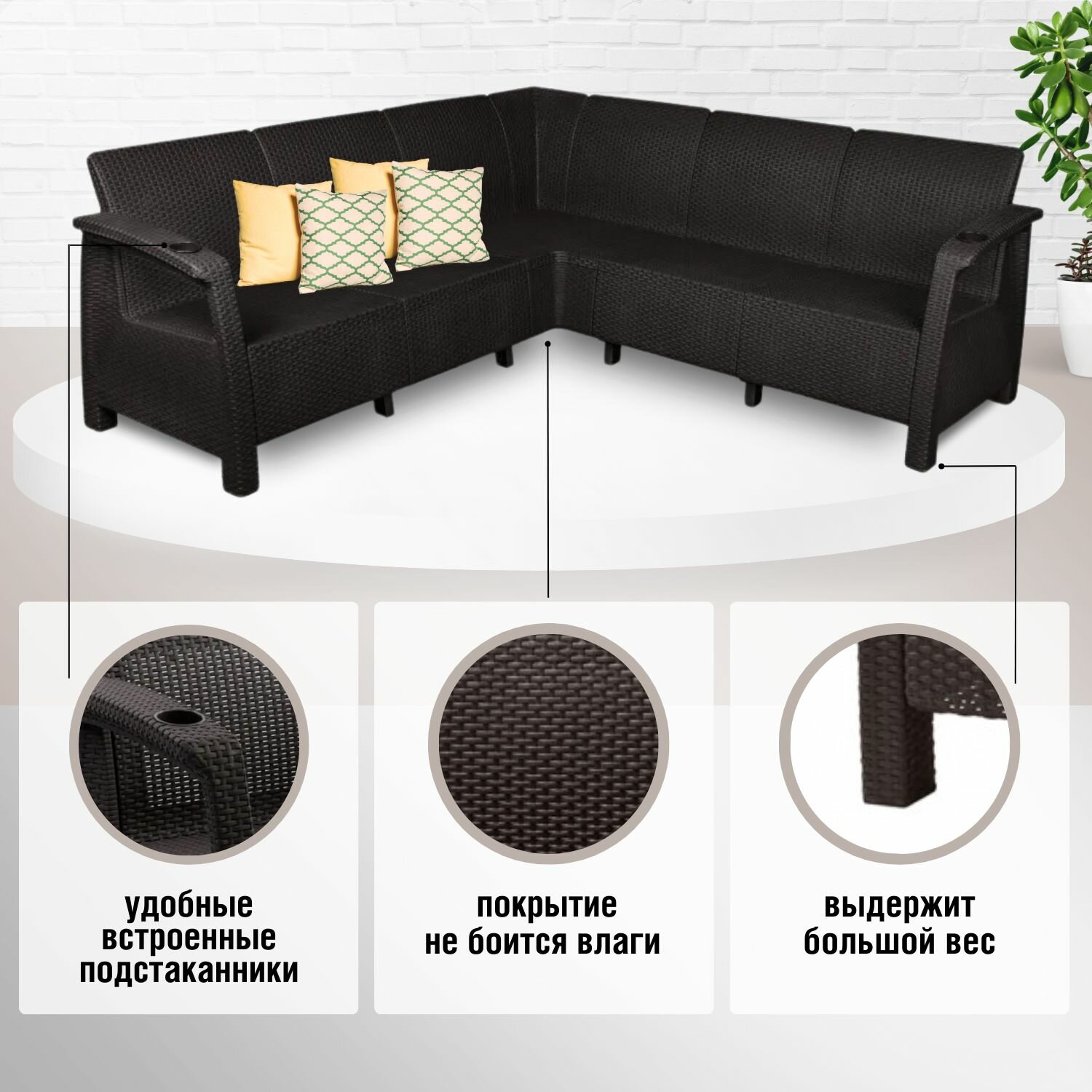 Комплект садовой мебели: Диван угловой и стол обеденный 160х95, мокко (подушки черного цвета)