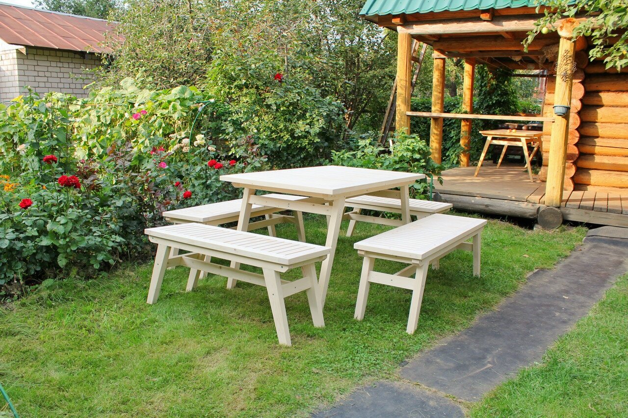 Комплект садовой мебели из массива дерева (стол 1,4м, 2 лавки) на 6 человек