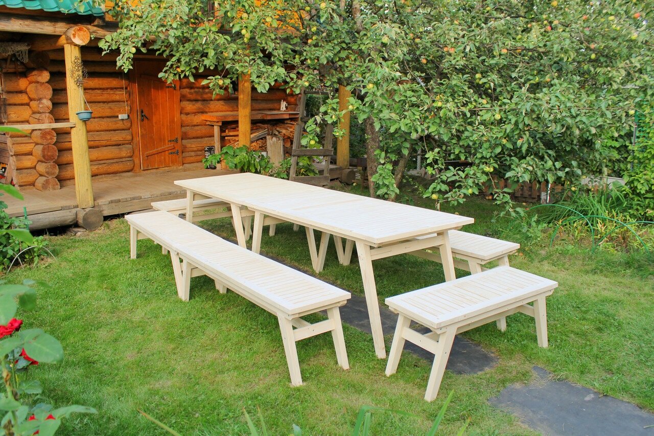 Комплект садовой мебели из массива дерева (стол 2м, 2 лавки) на 8 человек