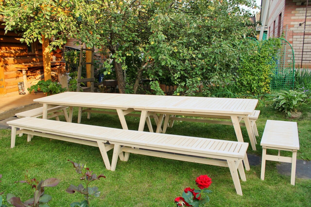 Купить Комплект дачной мебели "на 18-20 человек" (3,7 метра). 2 стола, 6 лавок