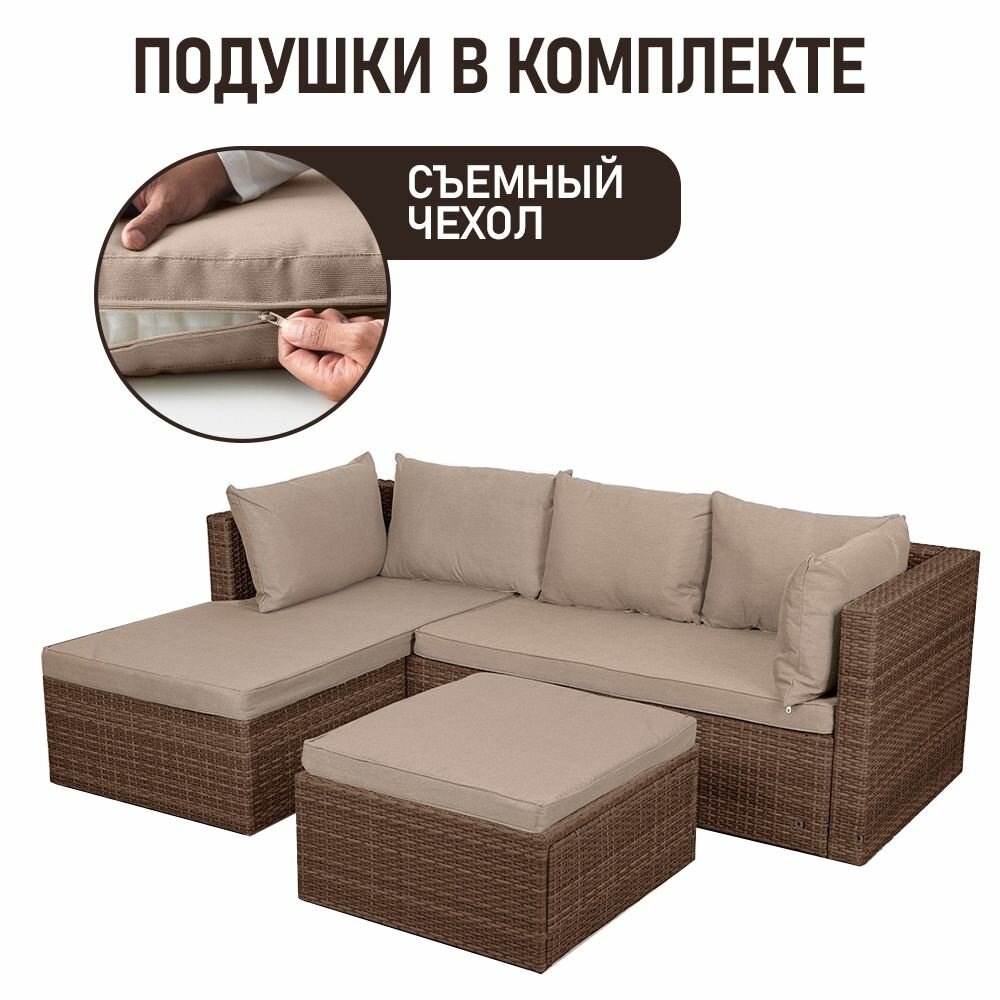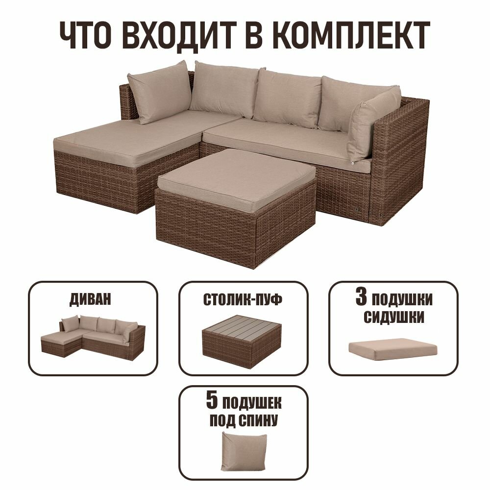Купить Комплект садовой мебели для дачи из ротанга Гардини. Правый угол, капучино