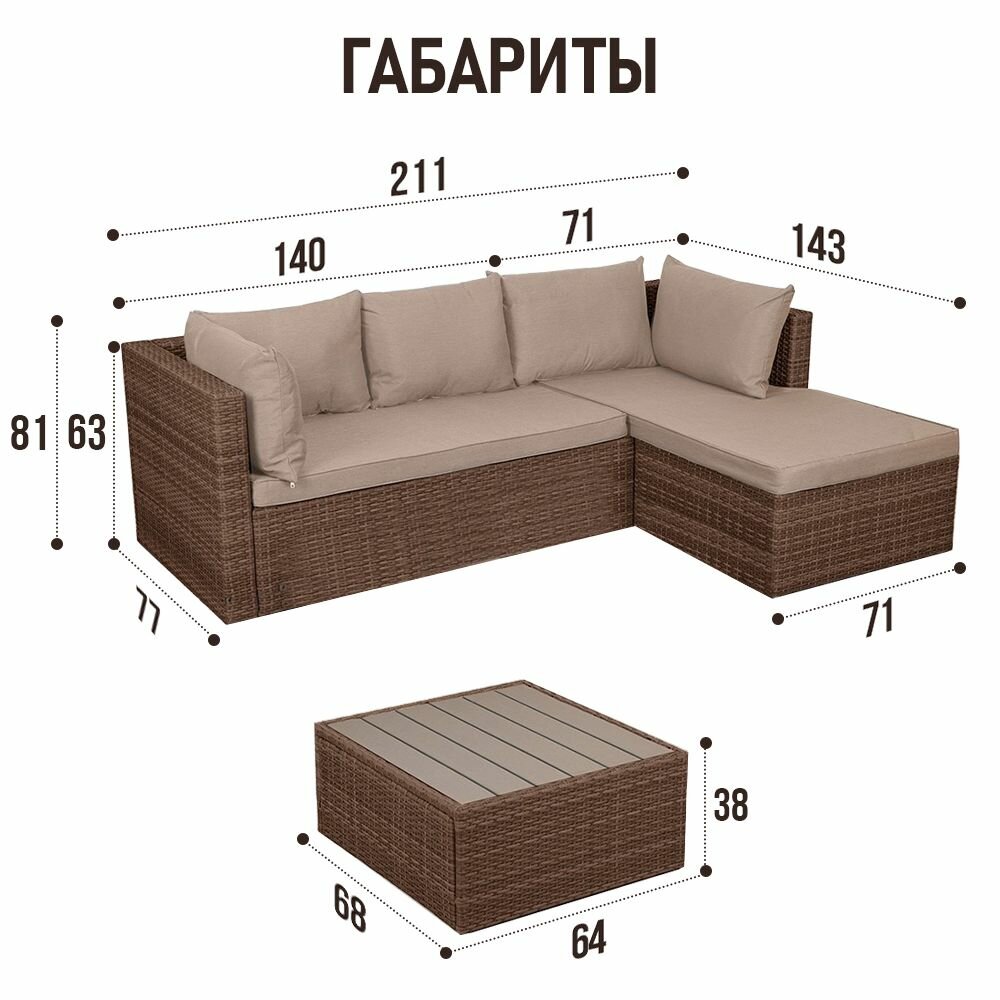 Купить Комплект садовой мебели для дачи из ротанга Гардини. Левый угол, капучино