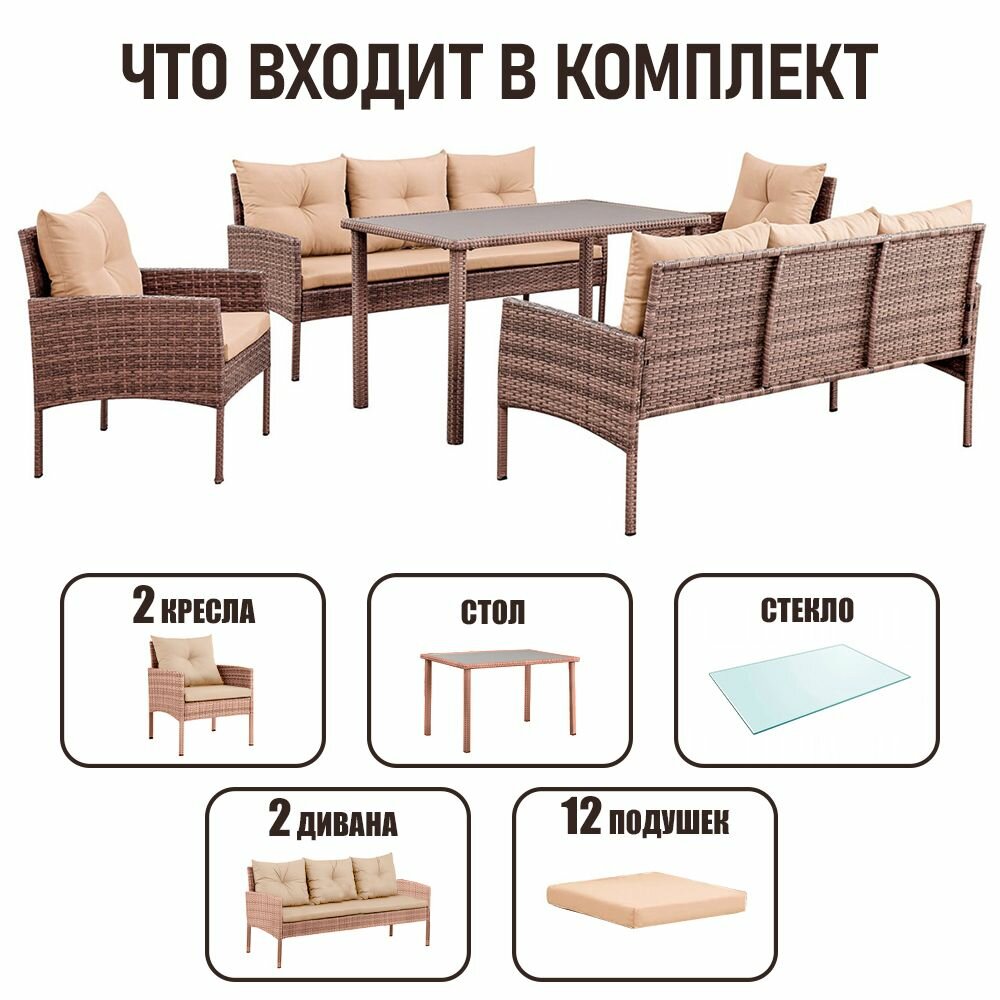 Садовая мебель из ротанга для дачи Фьорд-5 из искусственного ротанга, капучино